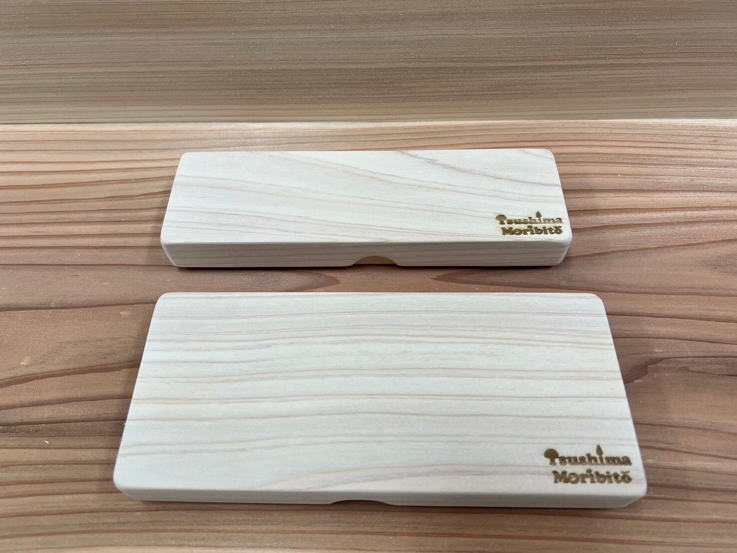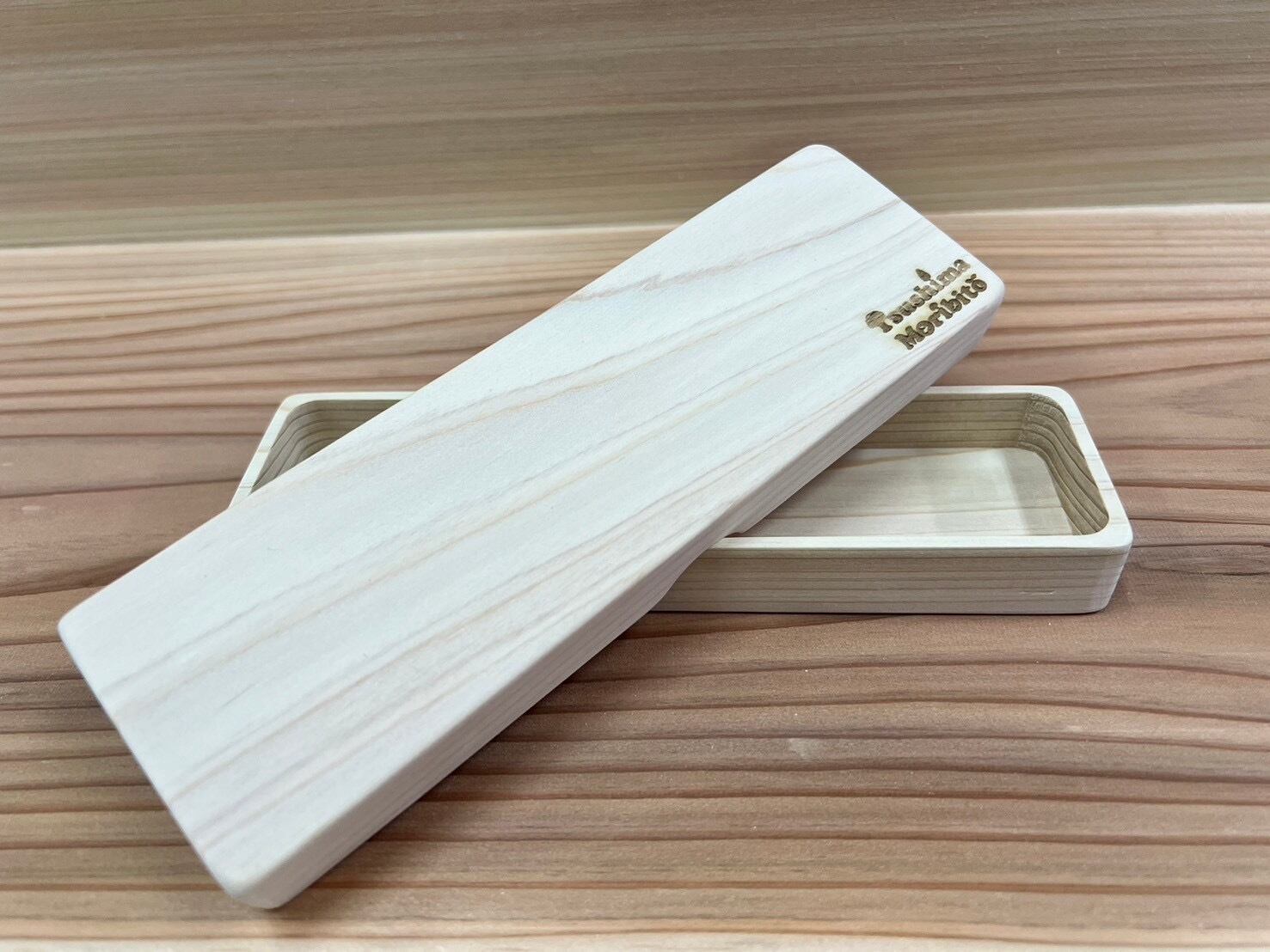 森林未利用材を活用して作ったヒノキの筆箱です。